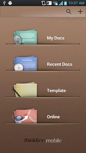 ThinkFree Mobile Pro supports a PC-like experience so that user can not only create new documents with templates but also download more than 40 kinds of extra templates from an online server for free.